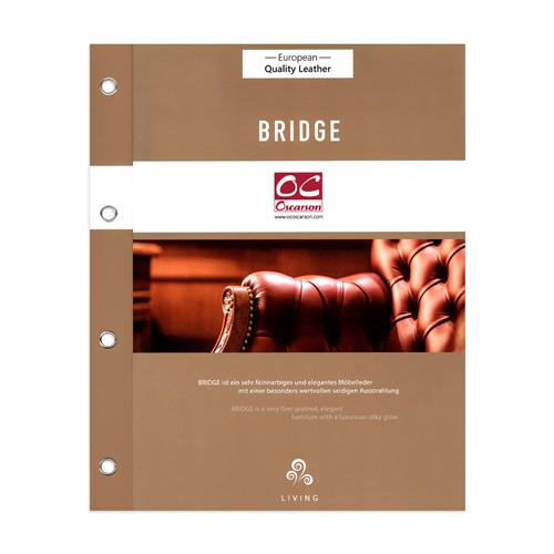 Bridge är ett vakuumgarvat, finkornigt exklusivt möbelläder av semianilintyp. Lädret har ett vackert djup, silkeslen lyster och lite sträv känsla, inte helt olikt sadelläder. En subtil tvåtonig finish accentuerar ytterligare lädrets lyxiga utseende. Möbler beklädda med Bridge passar i både moderna och traditionella miljöer och ger en smakfull touch till varje rum, både i hemmet och offentliga miljöer.