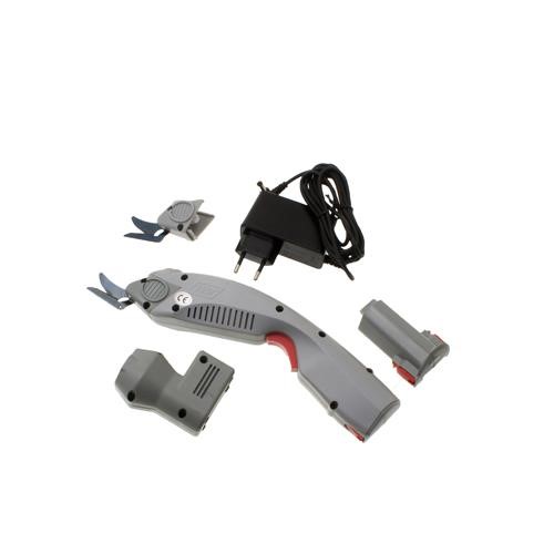 Ergonomisk uppladningsbar sax som kan användas för att klippa tyg, läder, papper, gummi, tunna plaster och andra material. Tystgående med en stor arbetskapacitet.
