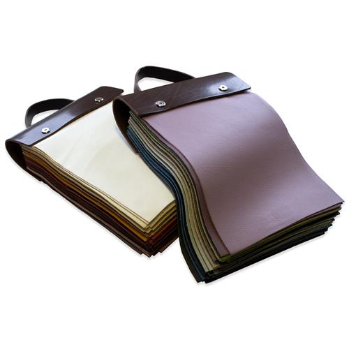 Exklusiv provhängare med stora läderbitar i A4-format. Kollektionen är uppdelad i två delar med anledning av det stora antalet färger.