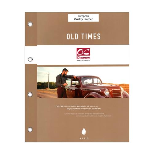 Old Times förenar traditionellt hantverk med banbrytande teknik, resultatet blir ett elegant vintageläder med en varm look. Old Times används ofta till traditionella engelska möbler och möbelrestaurering. På grund av dess låga skötselbehov används det med fördel i barer och restauranger. Det är även ett perfekt alternativ när du behöver stora stycken, till exempel till bänkar och väggbeklädnad.